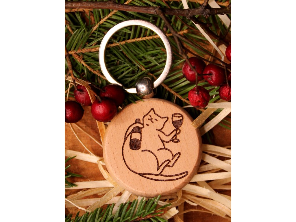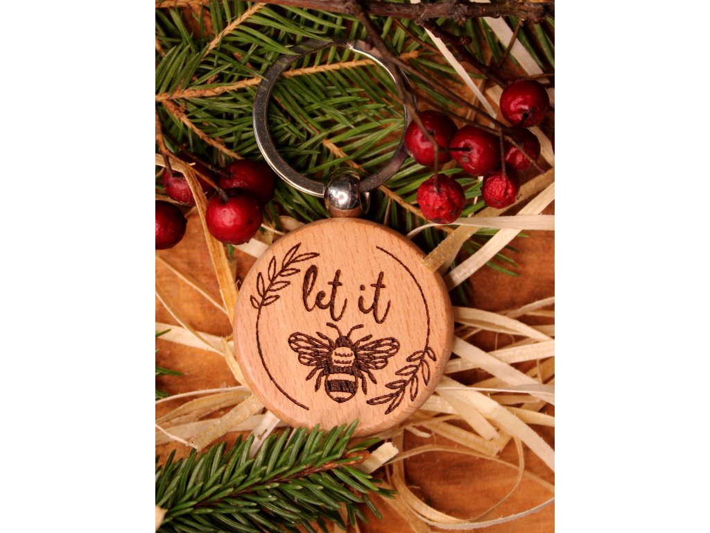 Dřevěná klíčenka s různými variantami. Text je gravírován pomocí laseru z obou stran.