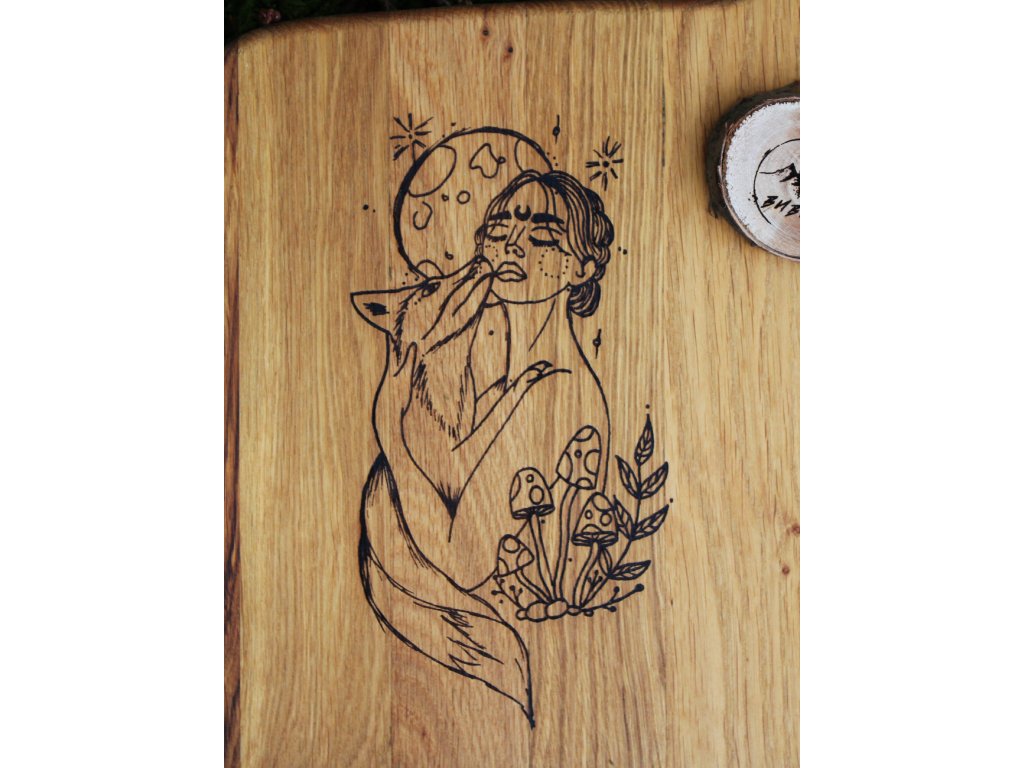 Dubové prkénko vhodné na krájení nebo servírování. Povrch je ošetřený směsí olejů a včelího vosku vhodných pro styk s potravinami. Na prkénko lze po domluvě vypálit náš nebo Váš motiv. V případě zájmu o vypálení motivu nás neváhejte kontaktovat a do objednávky zvolte variantu s vlastním textem nebo obrázkem.