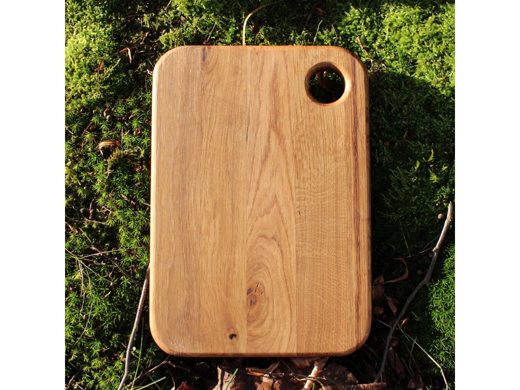 Dubové prkénko vhodné na krájení nebo servírování. Povrch je ošetřený směsí olejů a včelího vosku vhodných pro styk s potravinami. Na prkénko lze po domluvě vypálit náš nebo Váš motiv. V případě zájmu o vypálení motivu nás neváhejte kontaktovat a do objednávky zvolte variantu s vlastním textem nebo obrázkem.
