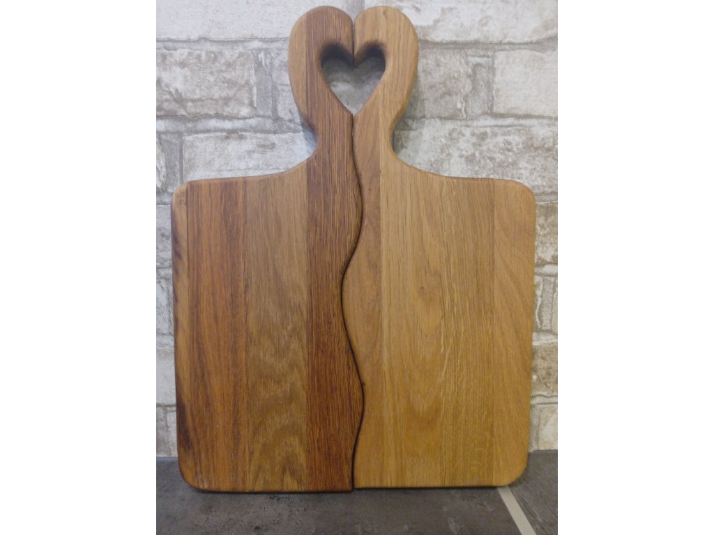 Dubová prkénka pro páry nebo jako svatební dárek. Vhodná na krájení nebo servírování. Povrch je ošetřený směsí olejů a včelího vosku vhodných pro styk s potravinami. Na prkénko lze po domluvě vypálit náš nebo Váš motiv. V případě zájmu o vypálení motivu nás neváhejte kontaktovat a do objednávky zvolte variantu s vlastním textem nebo obrázkem.